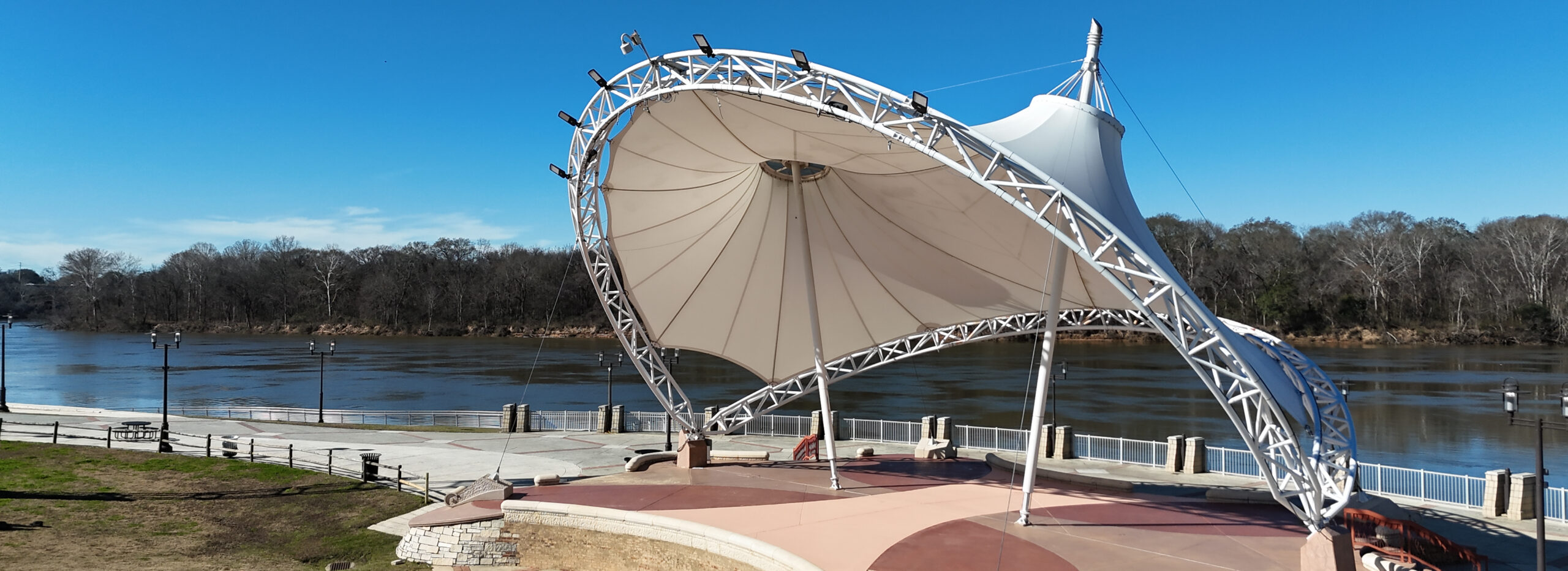 The Montgomery Amphitheater in Alabama is an architectural marvel that boasts a stunning 3,200 sq.ft. PTFE-coated fiberglass membrane roofing system, setting it apart as a premier entertainment venue. With its avant-garde design and advanced technology, this open-air amphitheater redefines the concert experience. The lightweight and translucent PTFE tensile membrane canopy not only adds an elegant touch to the structure but also offers exceptional weather protection, ensuring that performances can go on, rain or shine.