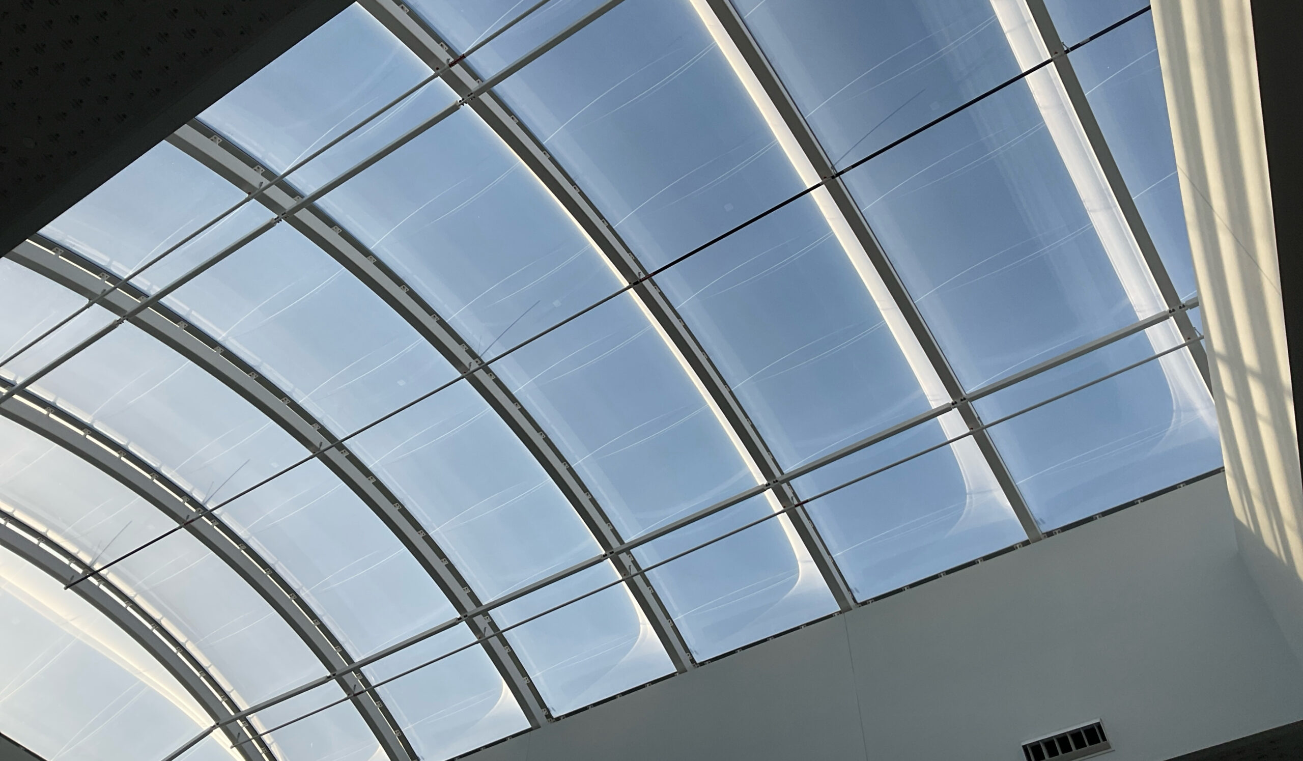 Birdair's scope for the project included design, engineering, fabrication, and installation of the ETFE film, them some of the supporting structural steel. TensoSky® ETFE film is durable, highly transparent and very lightweight in comparison to glass structures. ETFE is being considered the material of choice for traditional skylight applications to long span structures and building facades. The transparent ETFE film cushions at the new MSU Recreation Center were completed in early 2025, with overall substantial completion expected in February 2026.