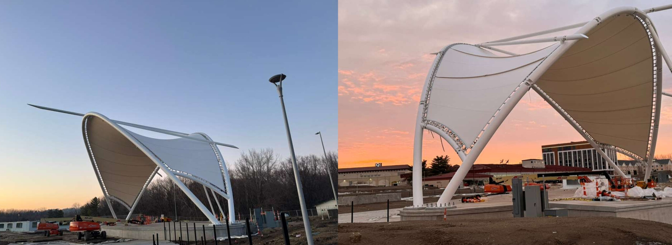 Anchoring the future of entertainment on Schmitt Island, a state-of-the-art open-air performance amphitheater is currently in the design phase and evolving to meet the needs of a dynamic and growing community. Set to open in summer 2026, this new Birdair tensile membrane structure with a hypar/saddle shaped design will be the centerpiece of the Schmitt Island recreation area and promises to be a regional destination for music, festivals, and large-scale events. Birdair's scope of work includes design, engineering, fabrication, and installation of the supporting structural steel framing, PTFE-coated fiberglass membrane, and membrane clamping hardware.